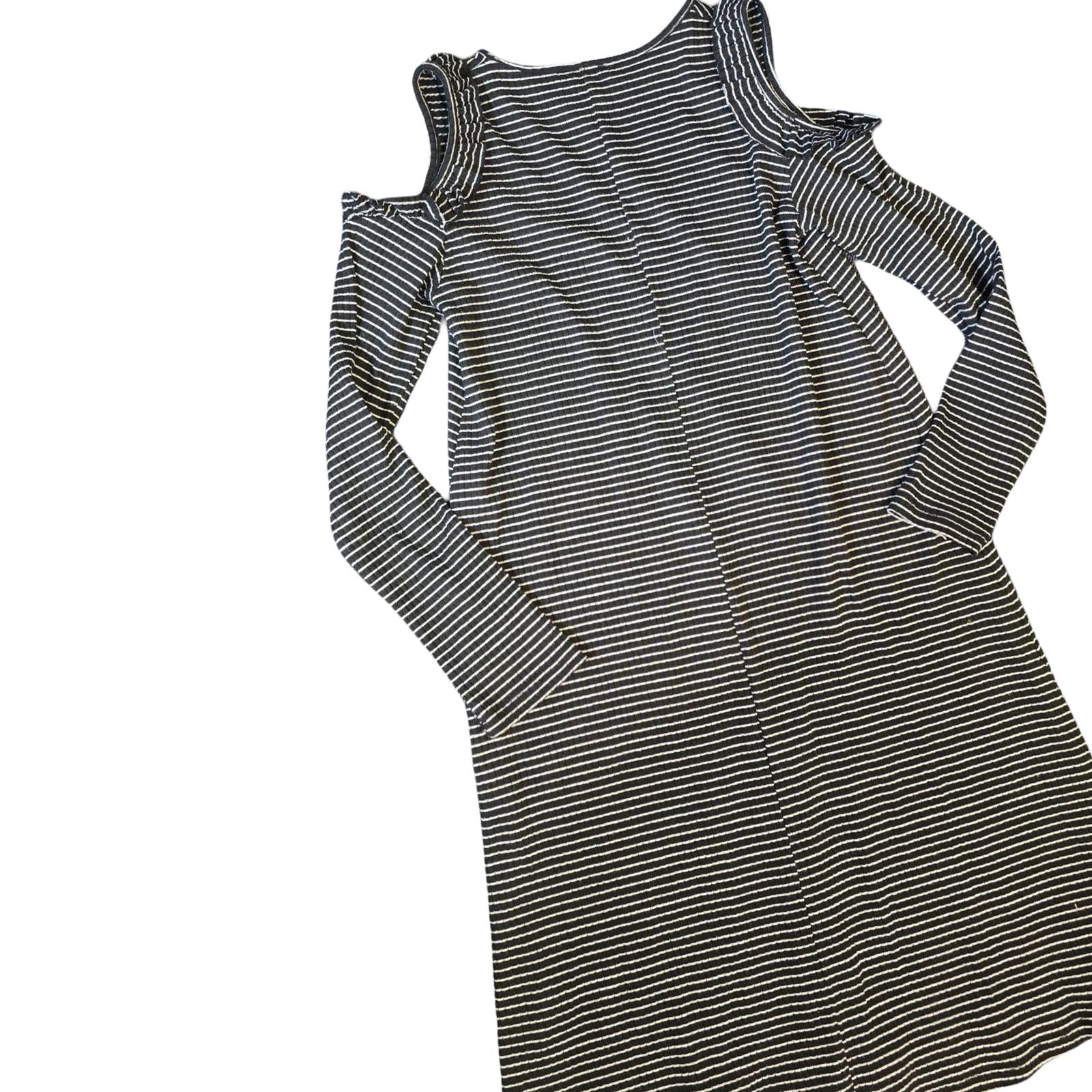 River Island Girls Black & White Striped Cold Shoulder Dress – Age 11–12 Years