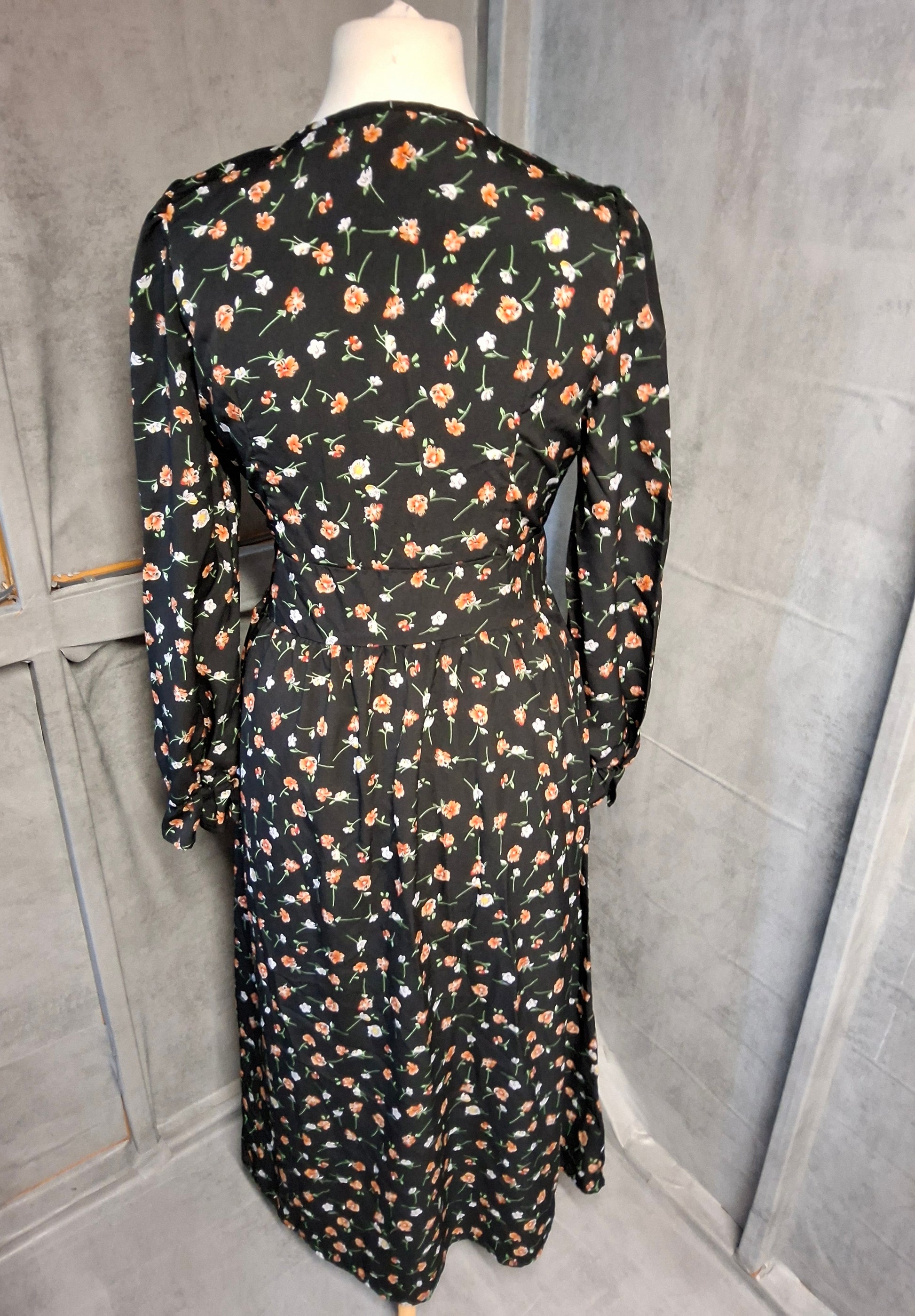 Shein Black Floral Midi Dress – Size M (UK size 10) – Button Front, Long Sleeves, Elastic Cuffs