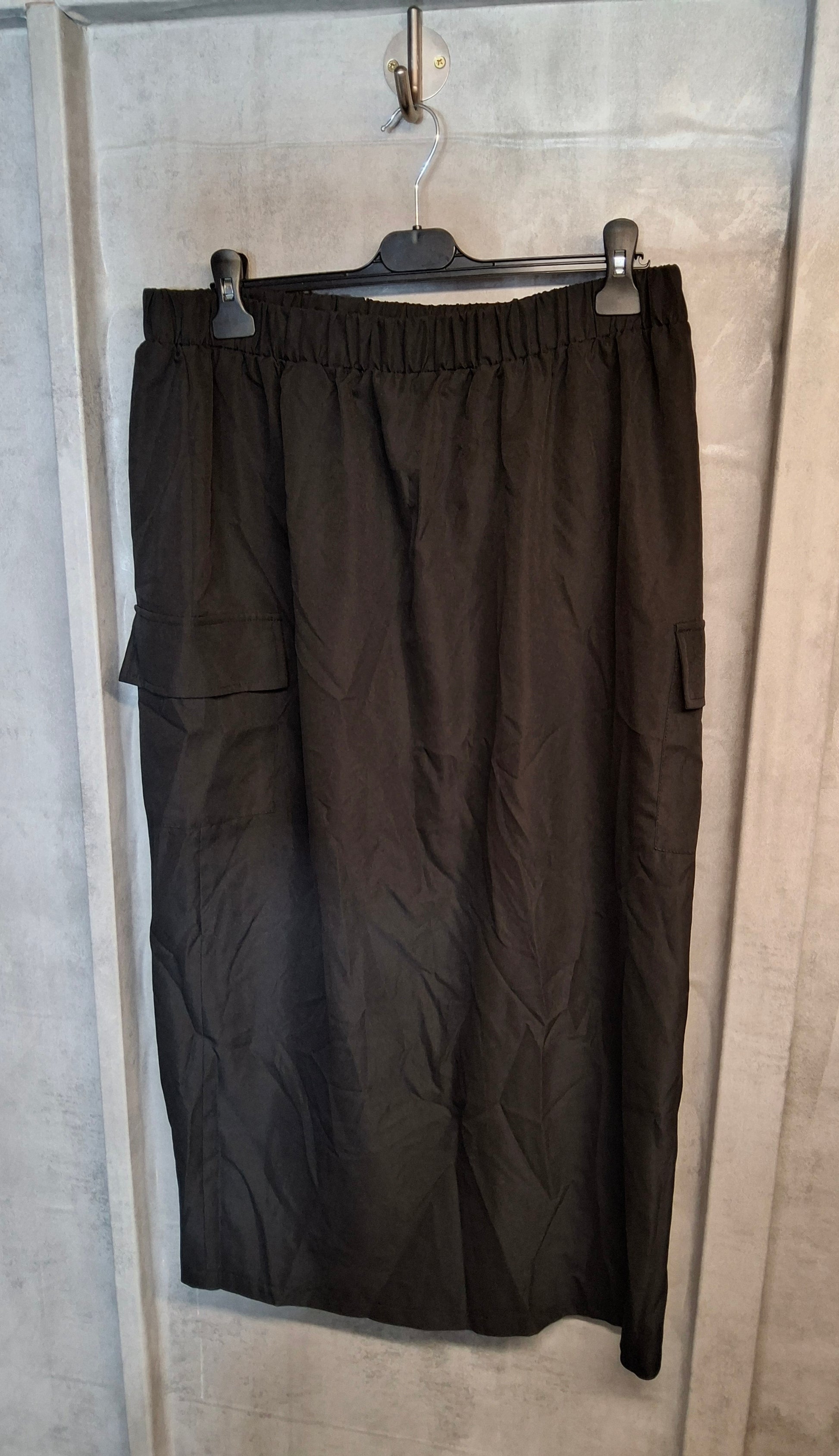 Shein Curve Black Cargo Maxi Skirt β Size 18/20 β Elastic Waist & Back Slit