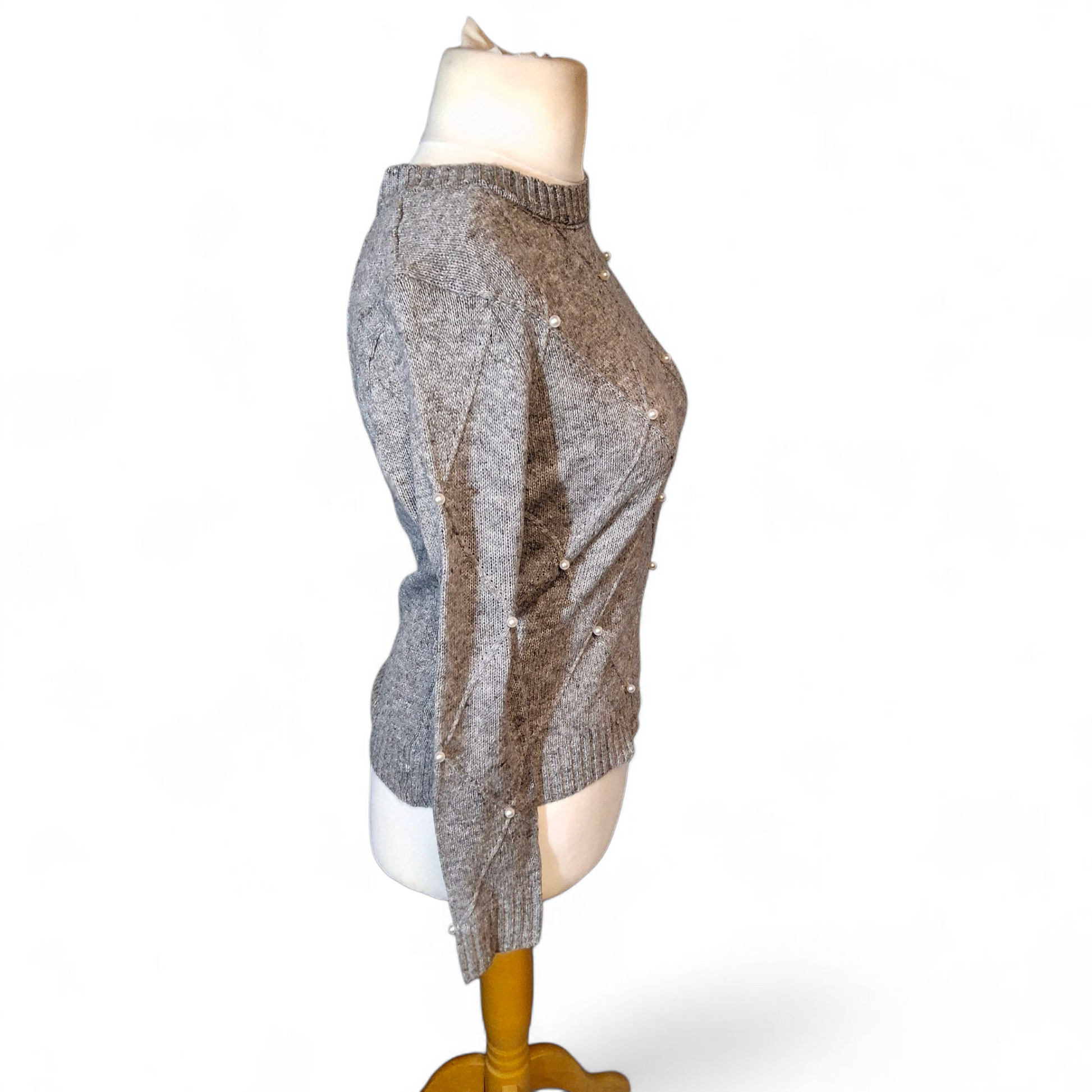 Shein Grey Knit Jumper – Pearl Detail – Size Small (UK size 8) – 100% Polyester