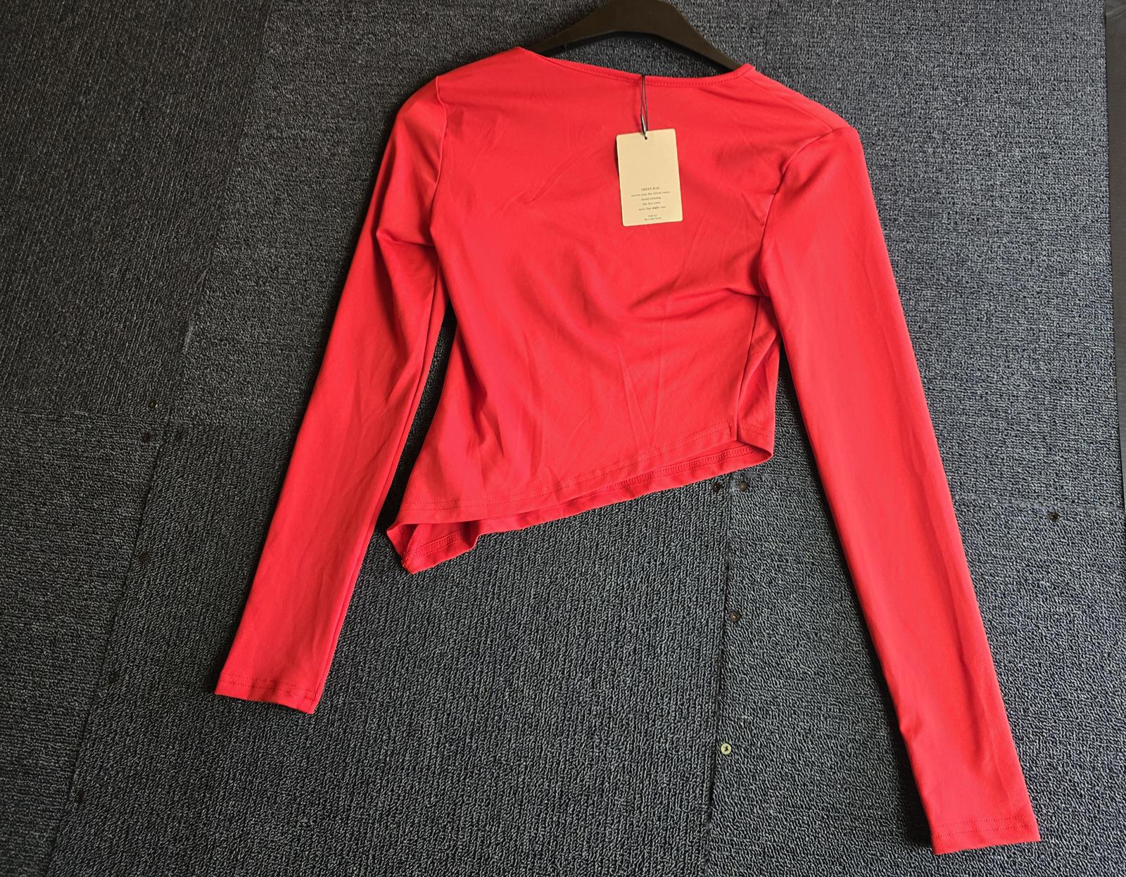 Shein Red Asymmetrical Crop Top XS 6-8 Long Sleeve Bodycon NWT