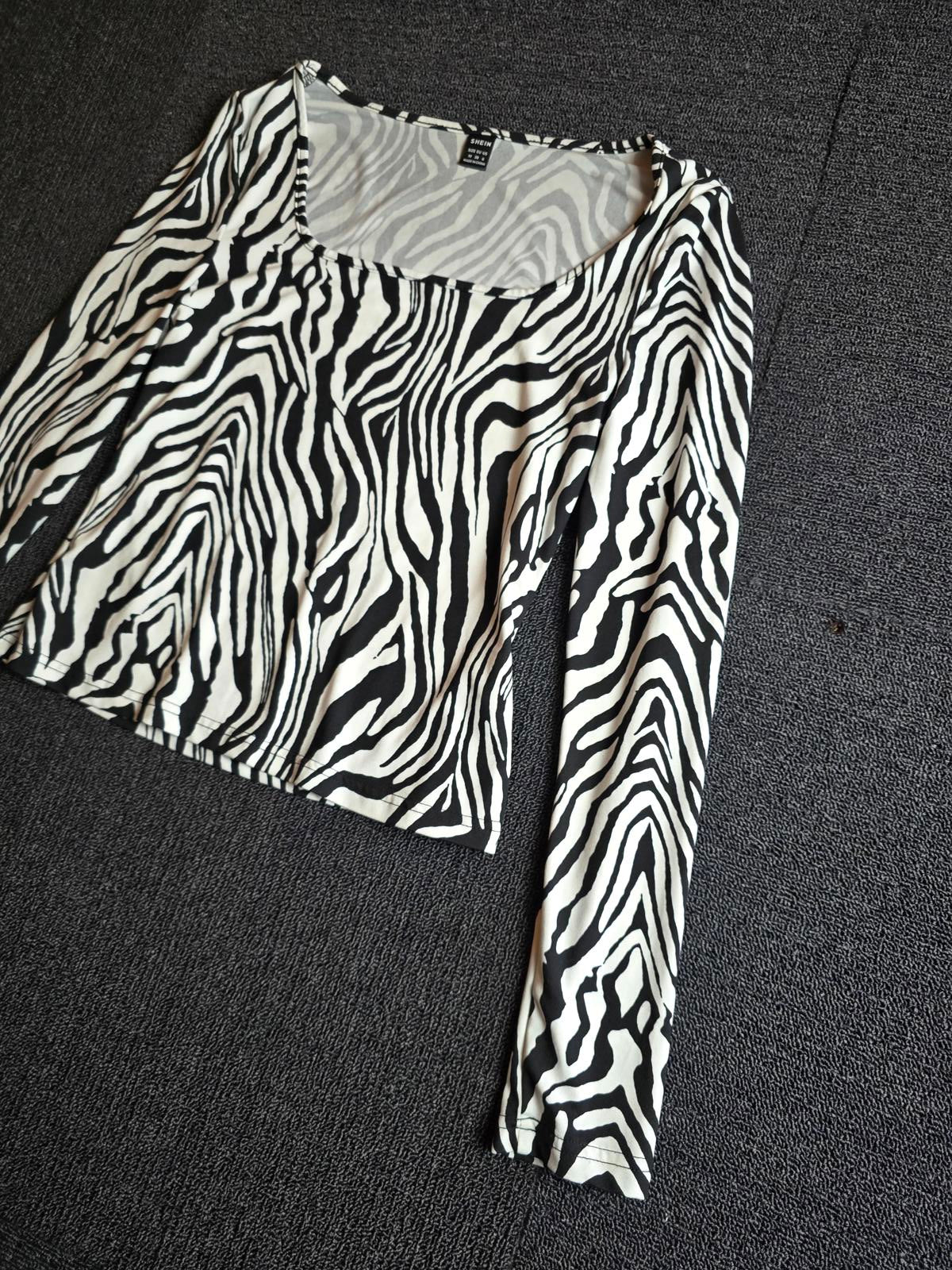 Shein Zebra Print Top Black & White Square Neck M Size 10–12 Bodycon