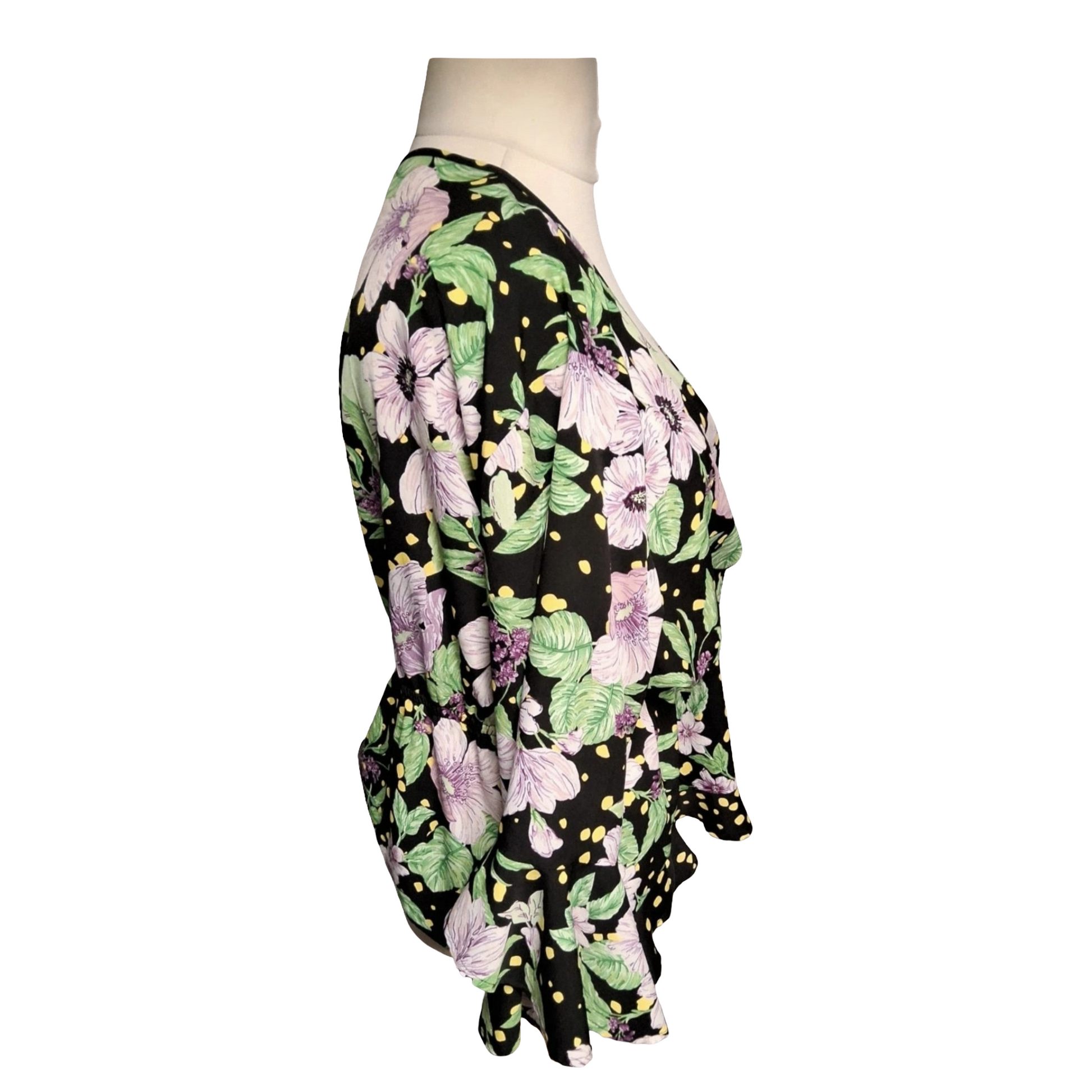 Simply Be Size 22 Wrap Peplum Top – Floral & Polka Dot Print with Flared Sleeves – Statement Style