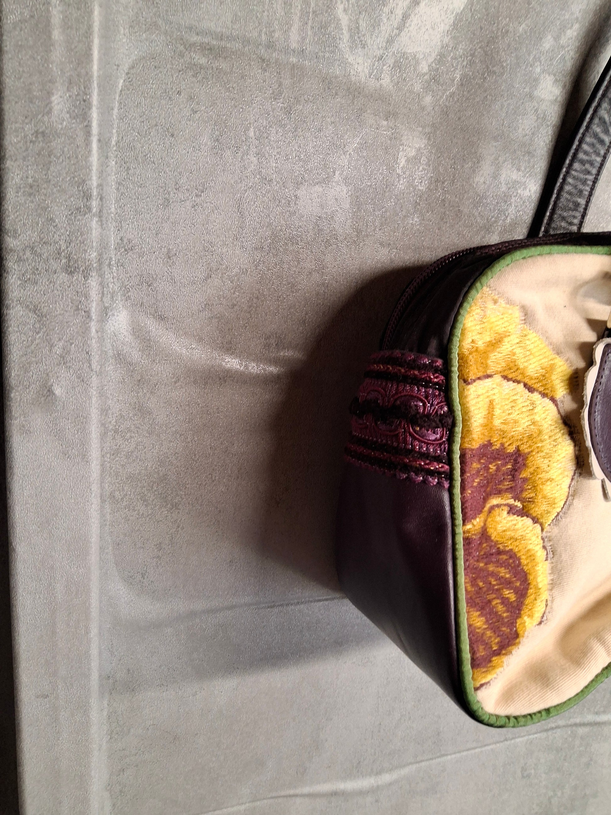 Add a pop of personality to your outfit with this striking Spencer & Rutherford handbag π Featuring a bold purple and gold geometric check front with floral embroidered panel on the reverse, finished with quirky contrast white and purple double straps. A true vintage-inspired statement piece thatβs both fun and functional.