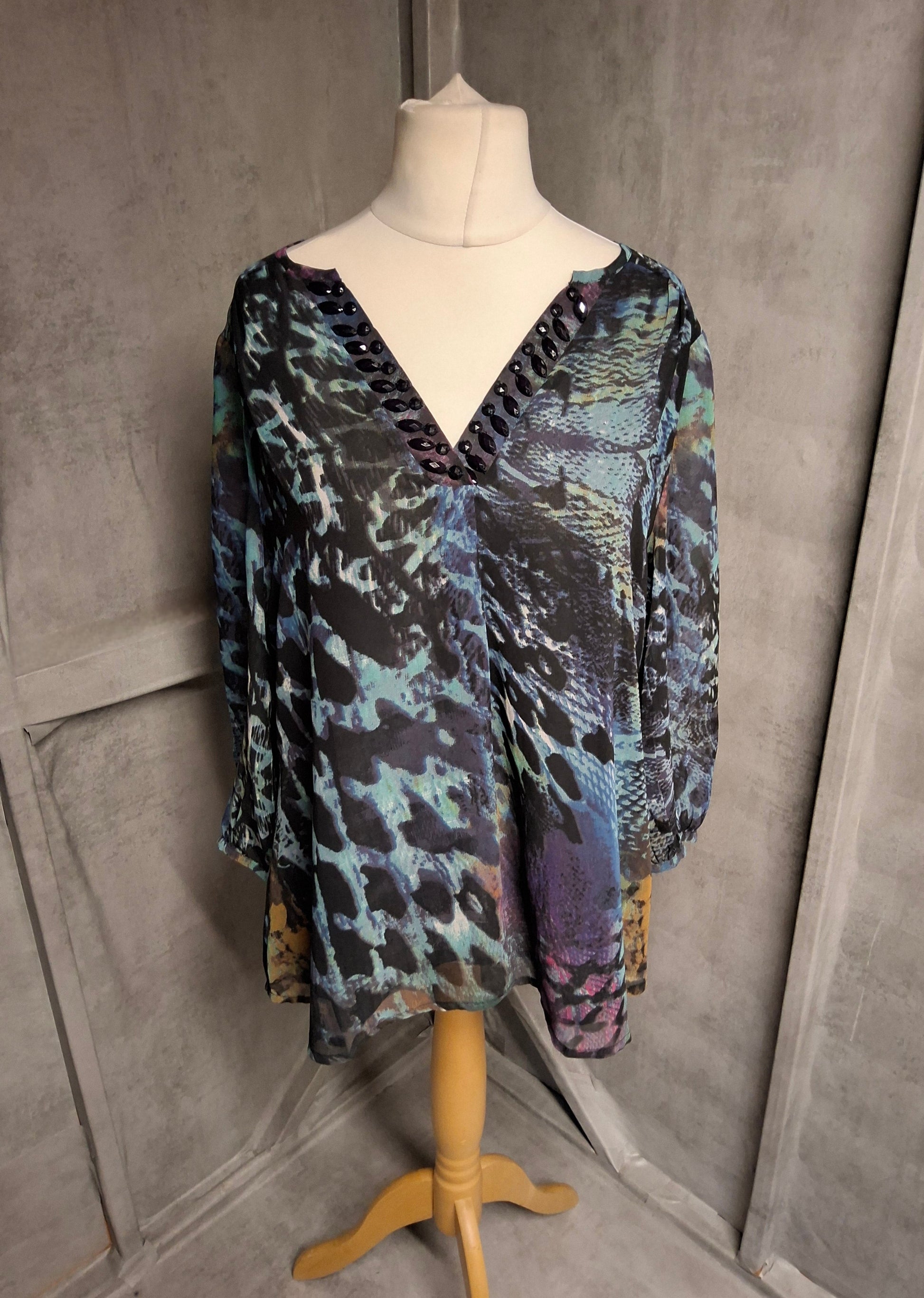 Together Sheer Gem V-Neck Blouse – Size M (UK size 14/16) Statement Top