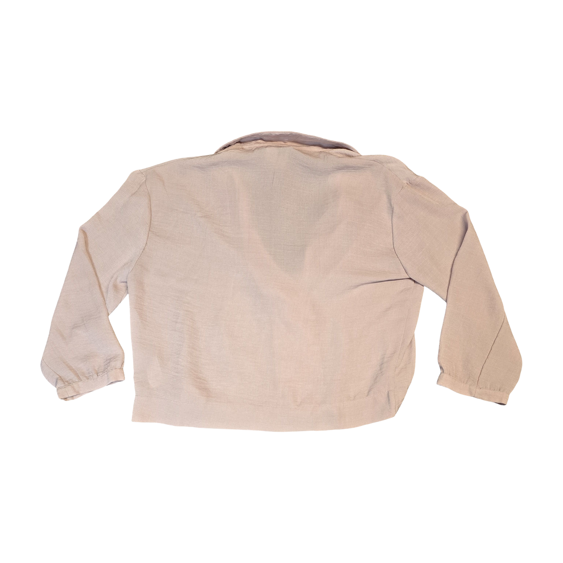 Style: Boxy oversized blouse, long sleeve, double-breasted button detail