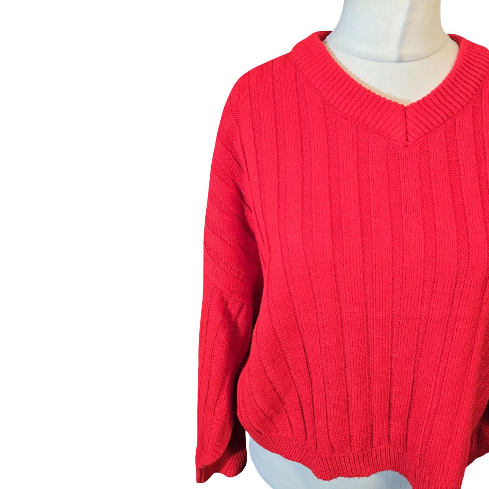 Topshop Red Oversized Ribbed Knit Jumper – V Neck – Size 16