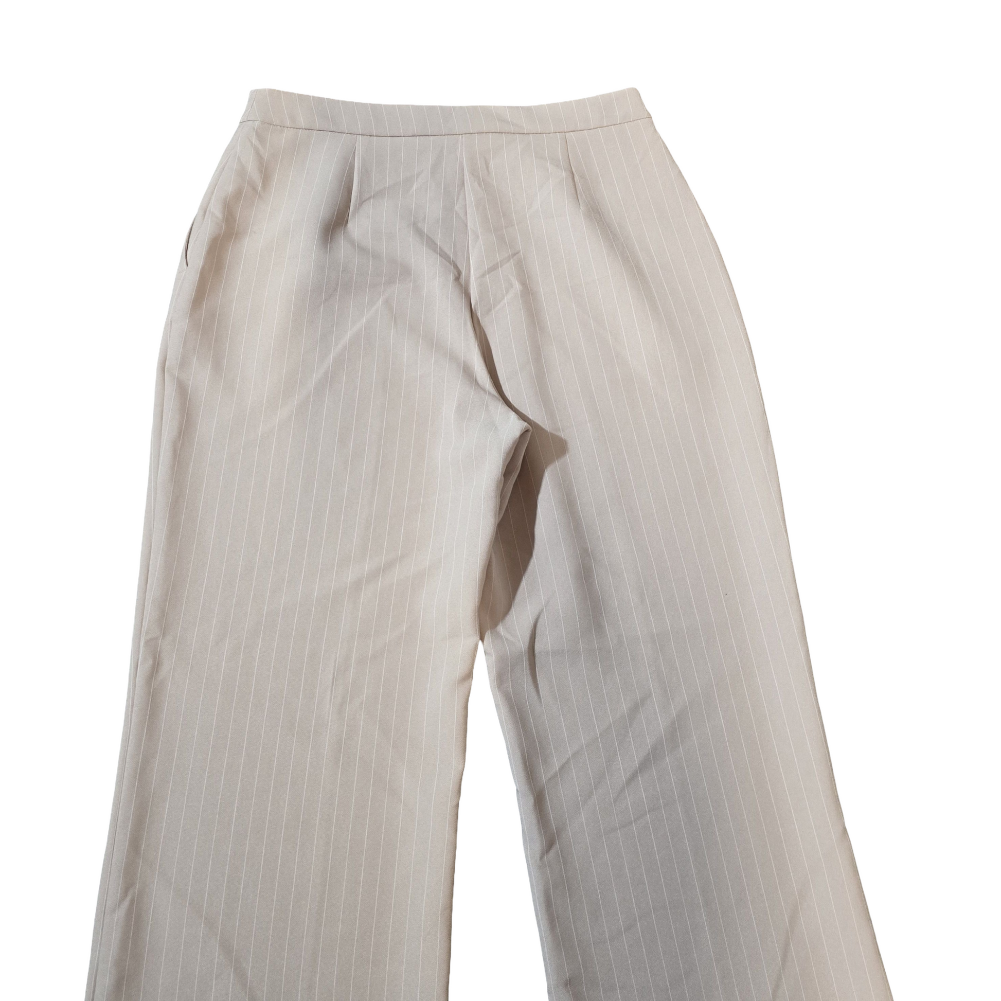 Tu Beige Pinstripe Flared Work Trousers – Size 14 Reg – High Waist & Pockets
