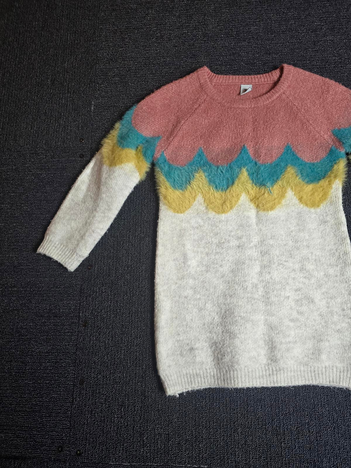 Tu Girls Knitted Jumper Dress – Colour Block Scallop Pattern – Age 2–3