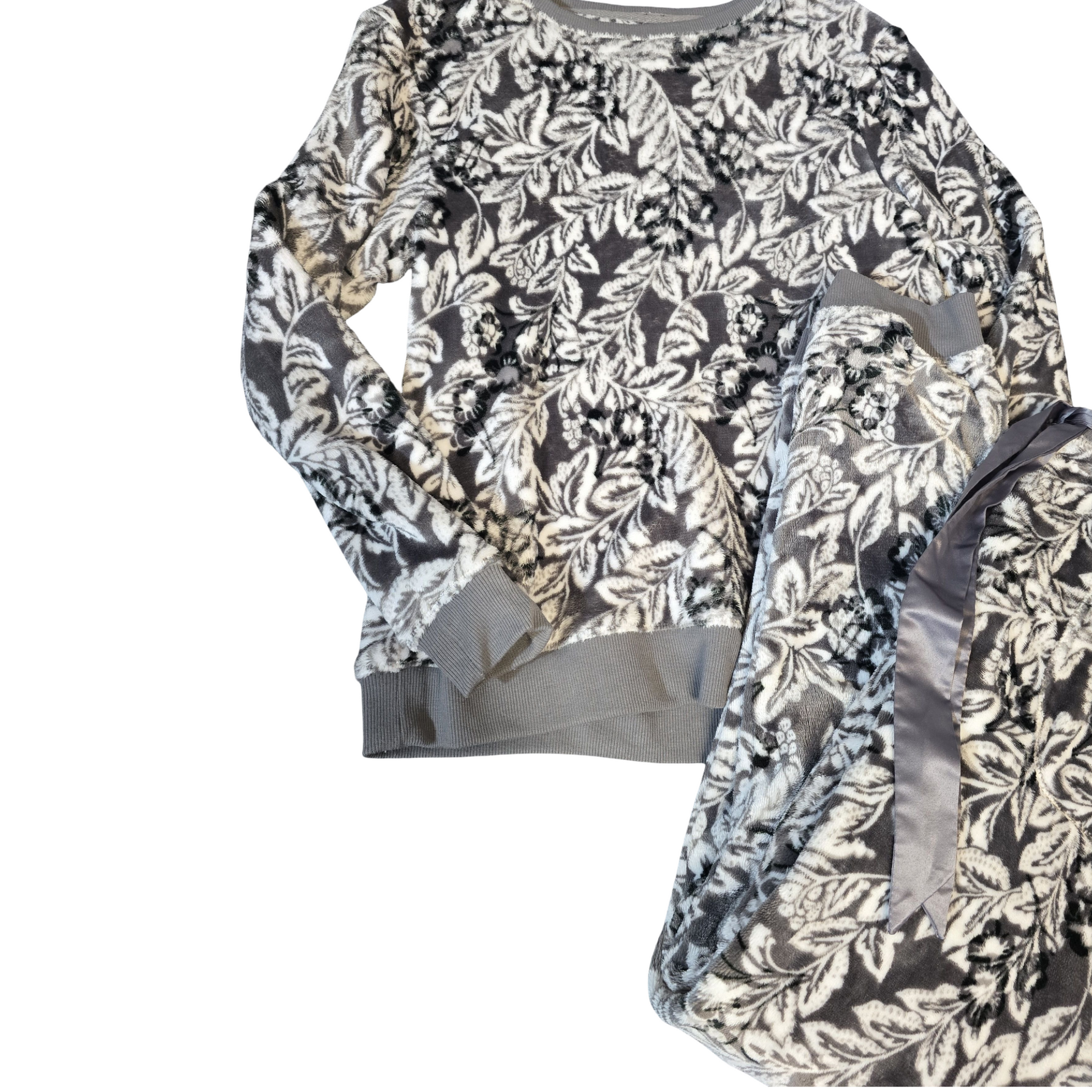 Tu Grey & White Fleece PJ Set – Size M (Fits size 12/14)
