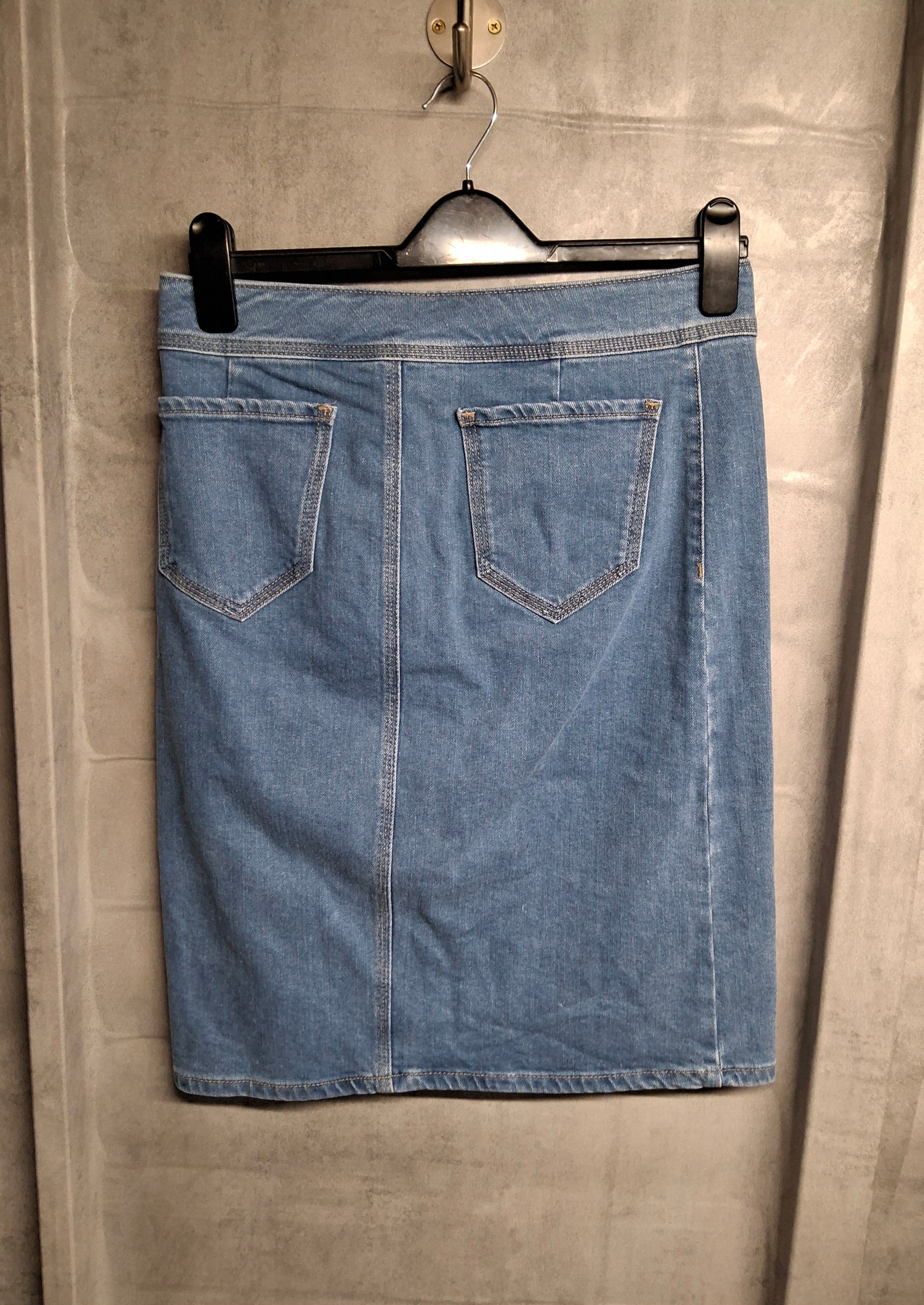 The denim skirt that does it all š. This Tu piece gives classic vibes with a modern twist: knee length, button-through front, and a subtle slit for easy movement. New with tags (RRP Ā£25), so you get the brand-new feel without the brand-new price.