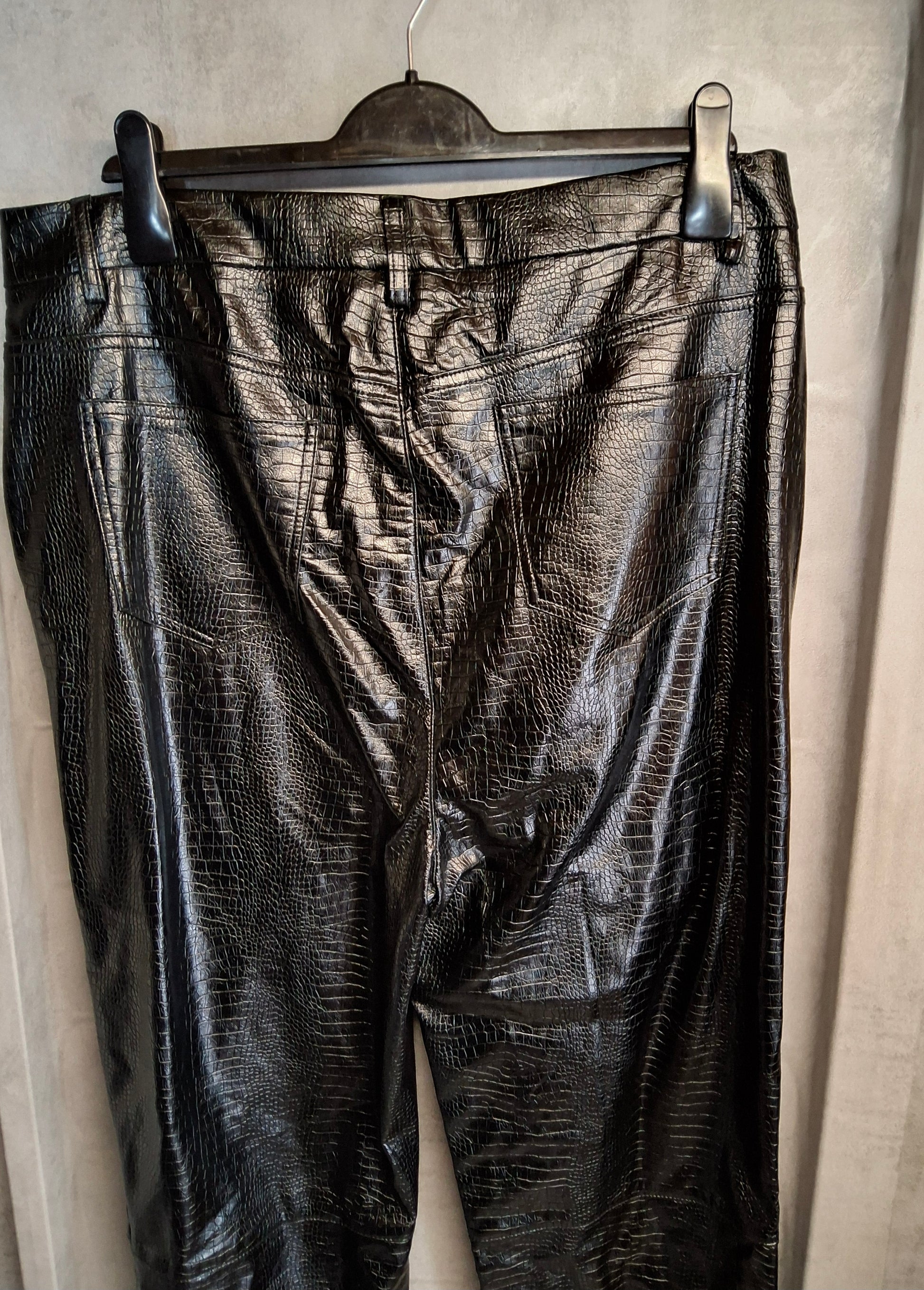 MissPap Black Faux Leather Snakeskin Straight Leg Trousers – Size 16