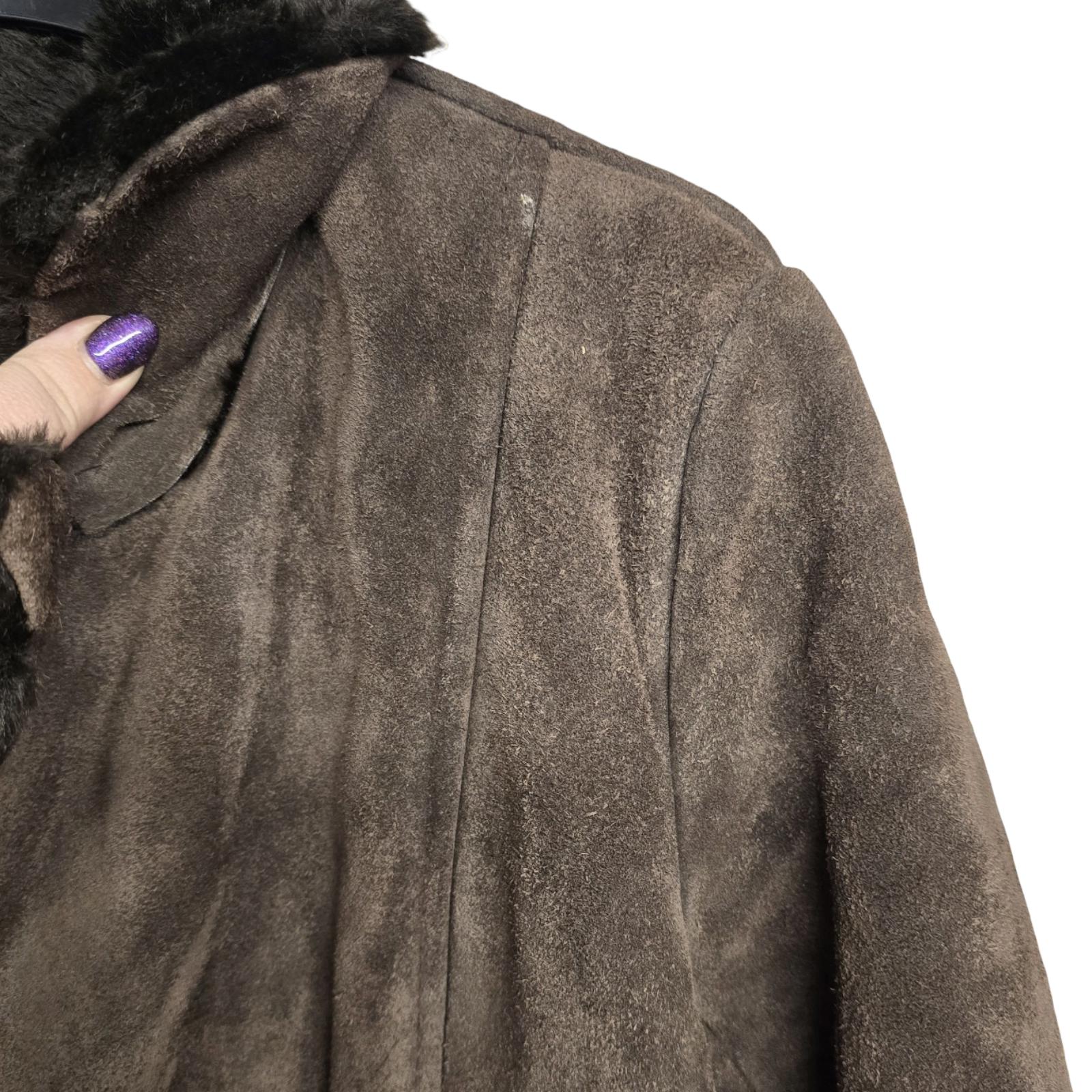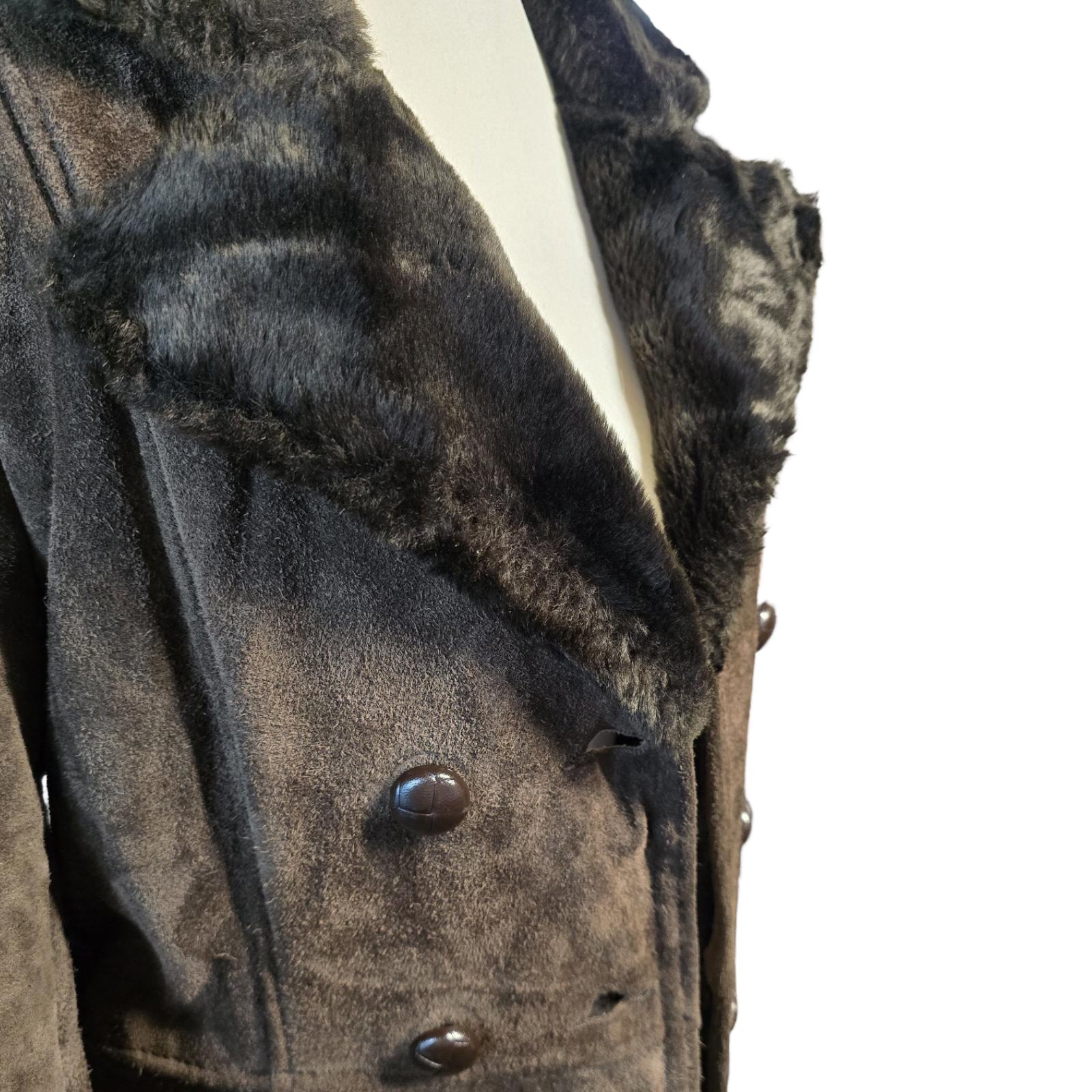 Vintage 1960s/1970s Leather & Suede Coat Brown Made in England Faux Fur Lined