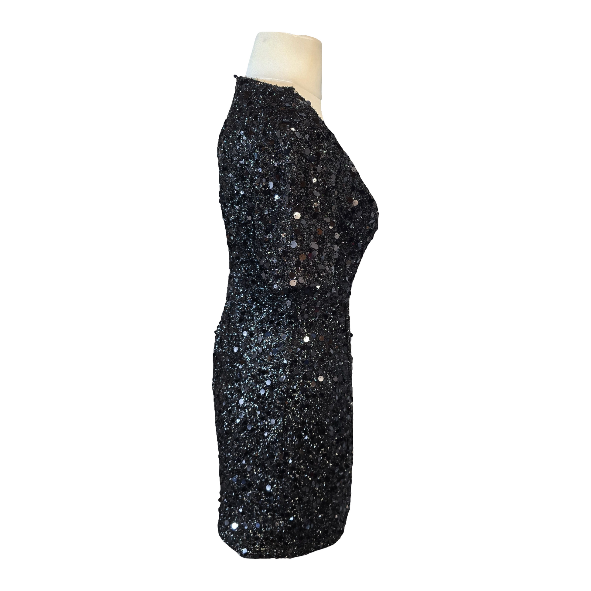 Because sometimes subtle just isn’t on the agenda — this stunning black sequin mini dress from Warehouse is made for nights that sparkle (literally).