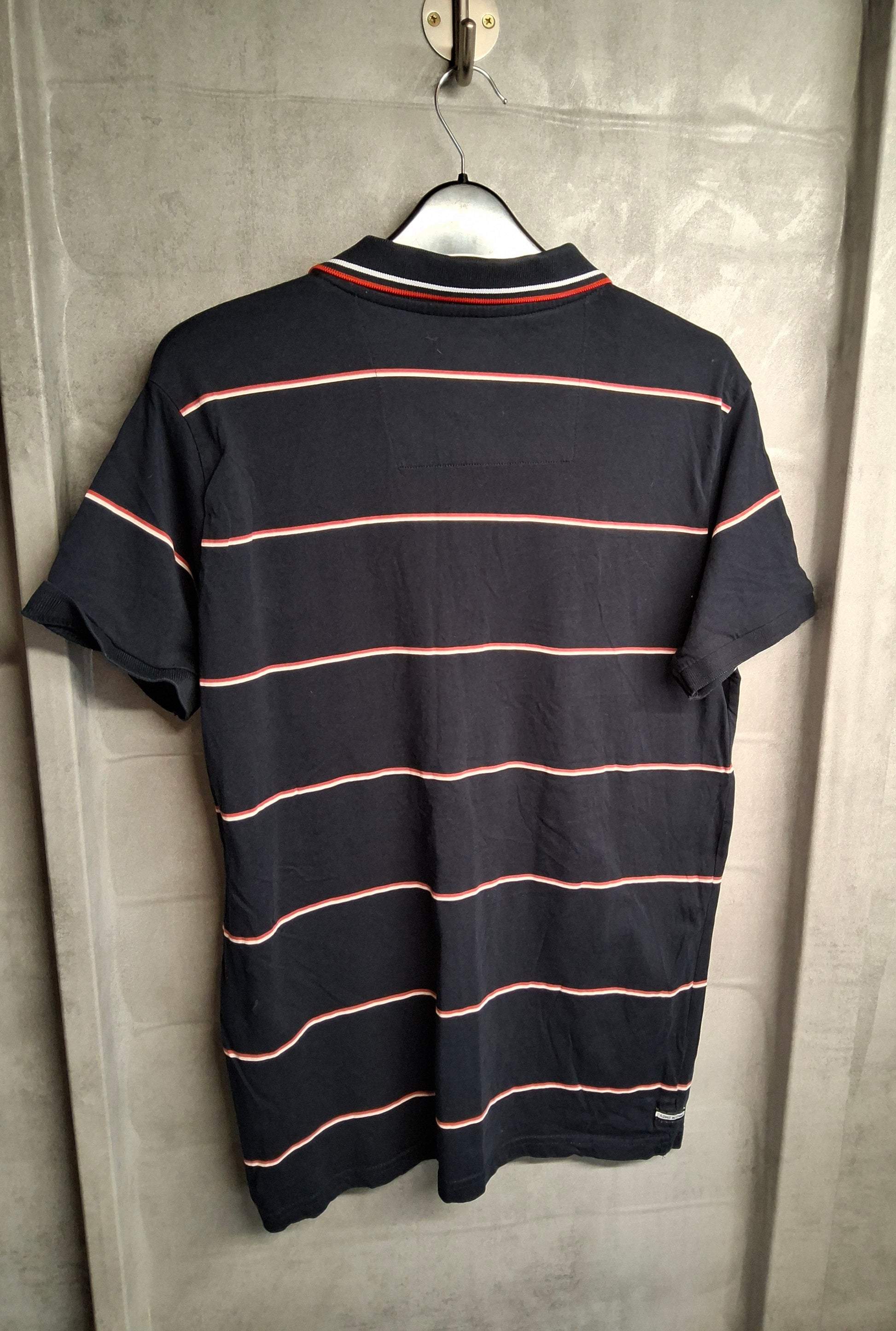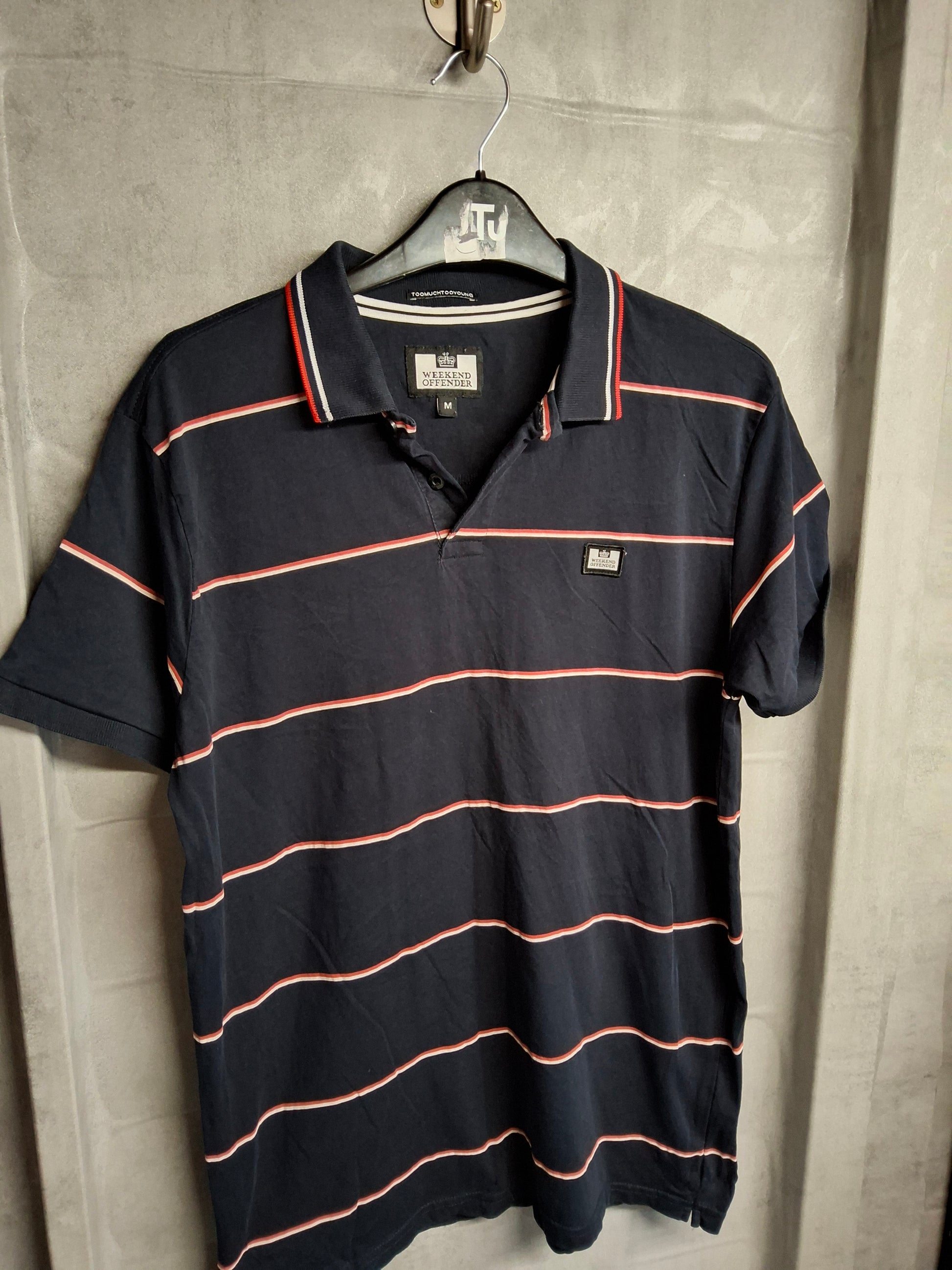 Weekend Offender Men’s Polo Shirt – Navy with Red & White Stripes – Size M – 100% Cotton