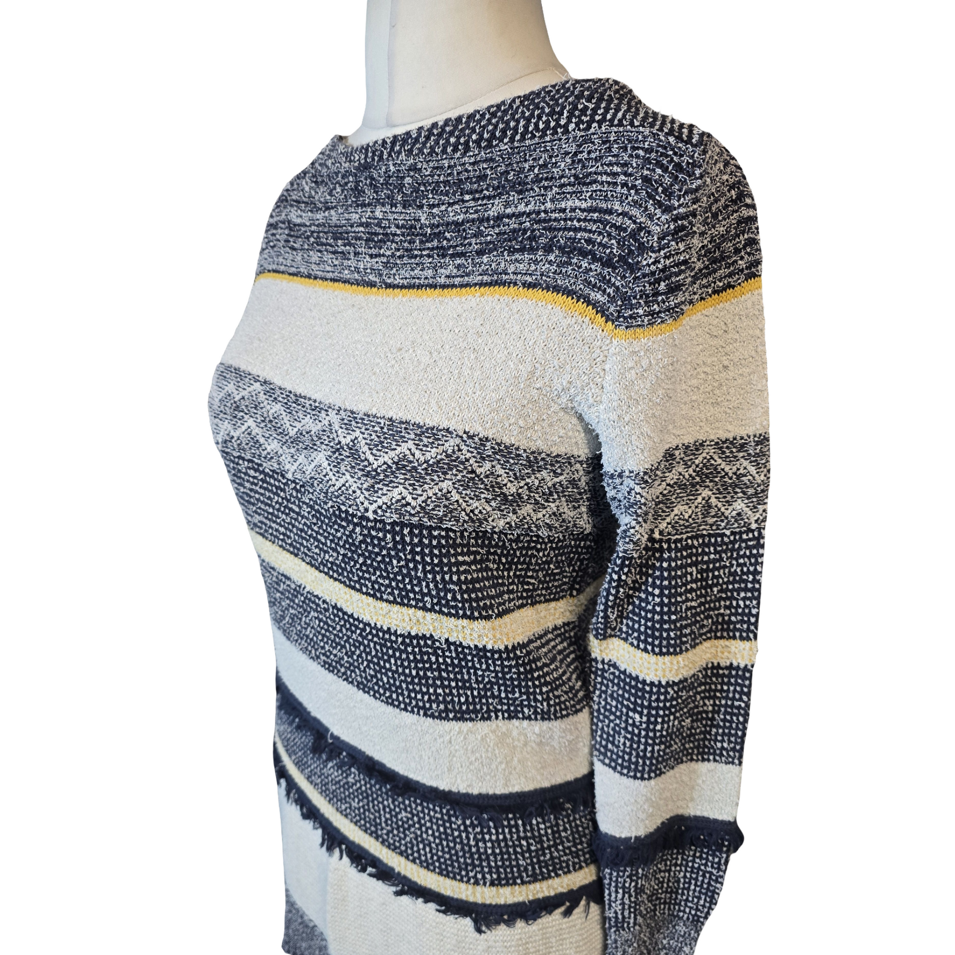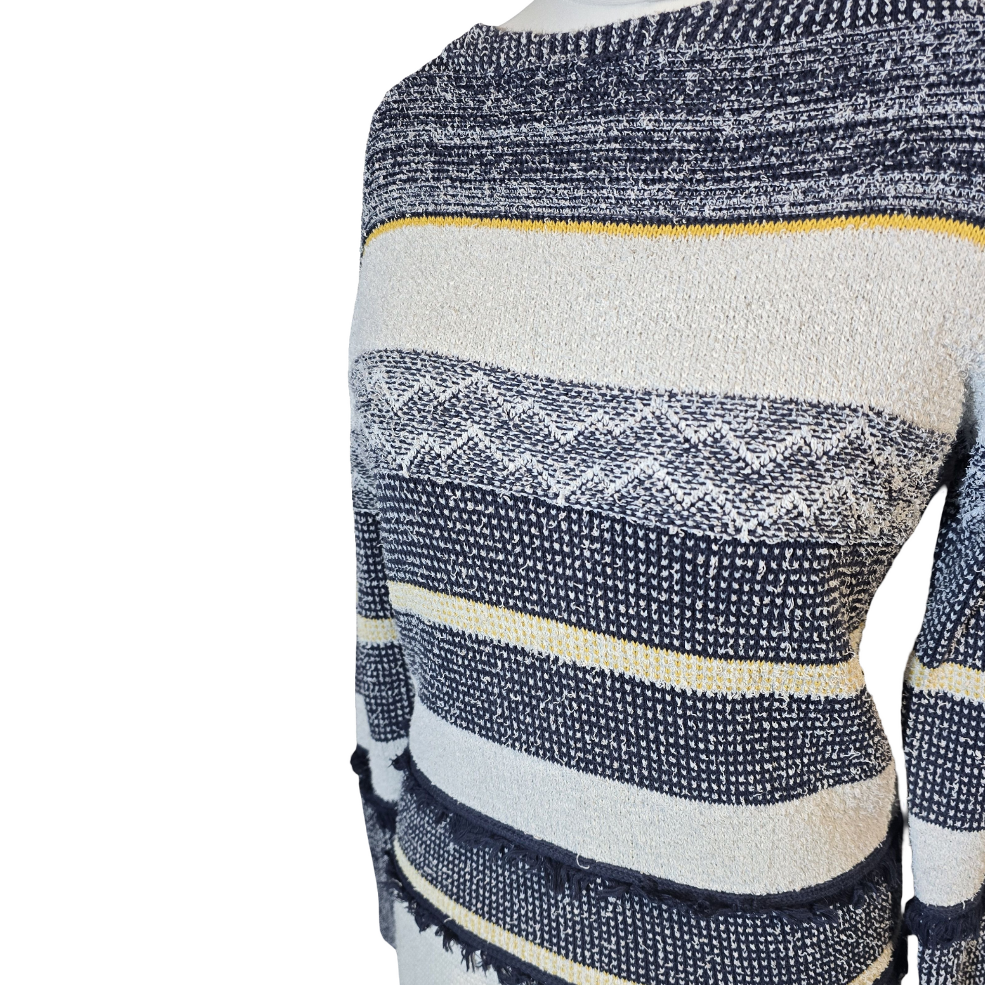White Stuff Navy Frayed Jumper Casual Knit – Size 12