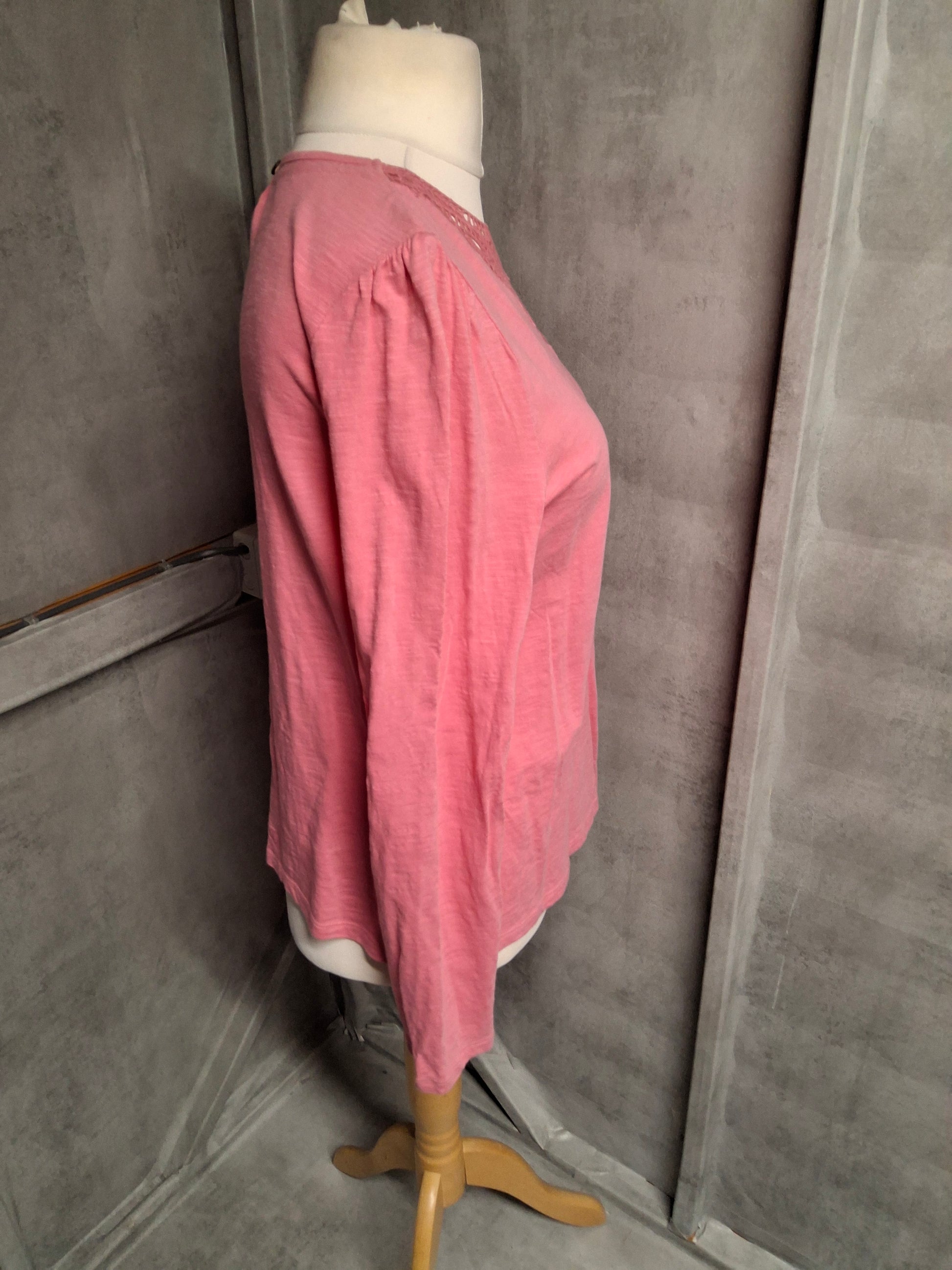White Stuff Pink Cotton Embroidered Long Sleeve Top Size 14
