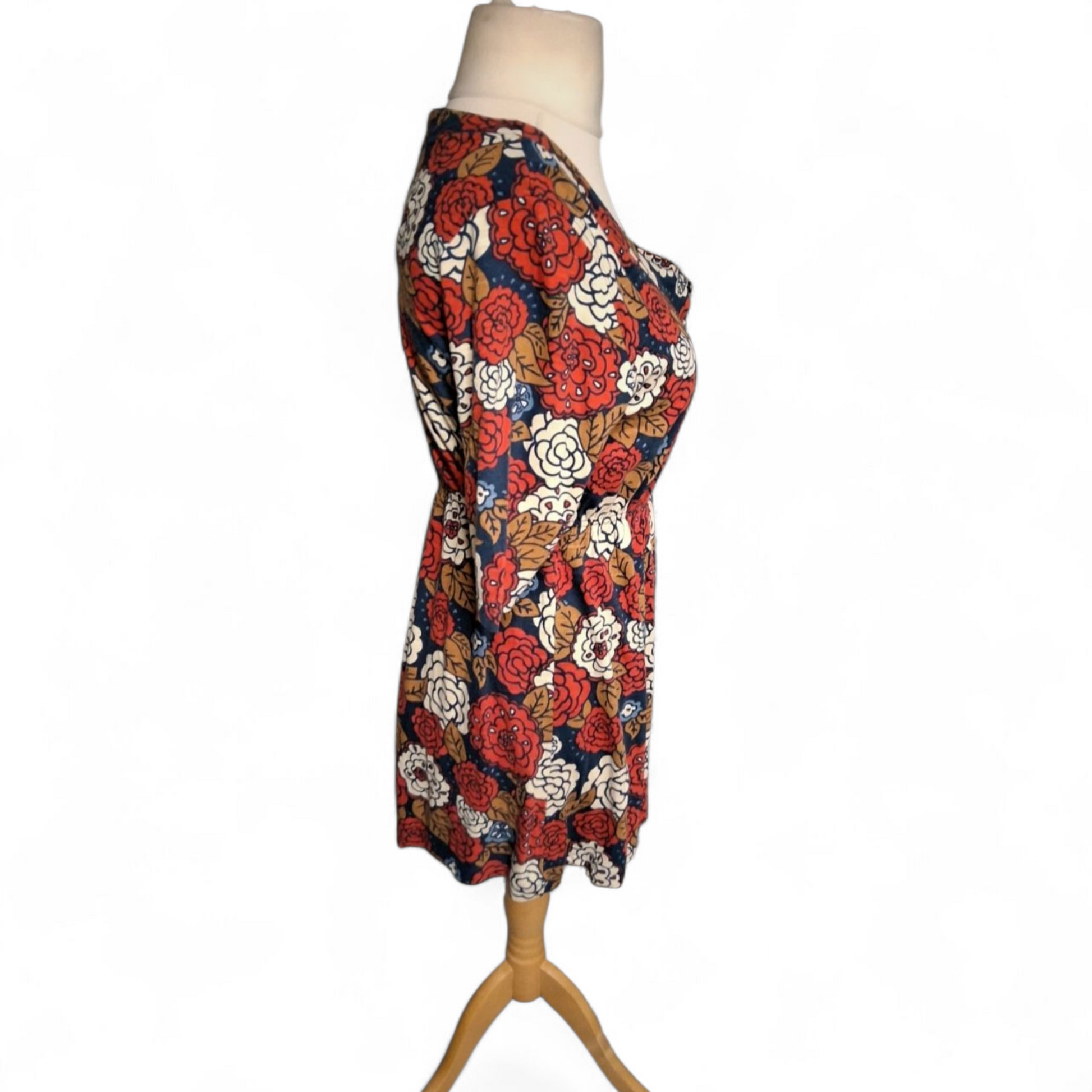 Weird Fish Navy Red & White Floral Tunic Top – Size 14 – ¾ Sleeve Cotton Modal