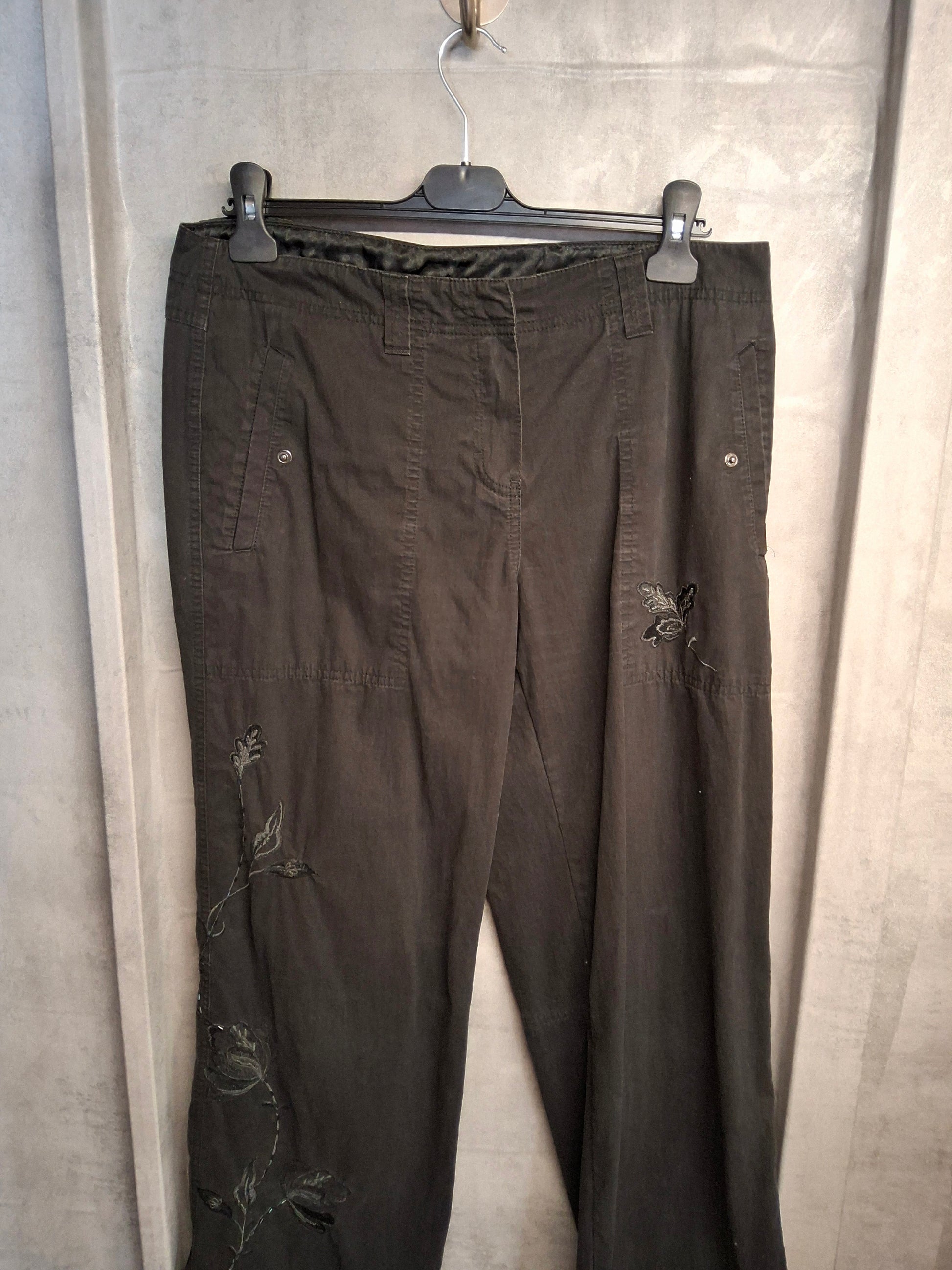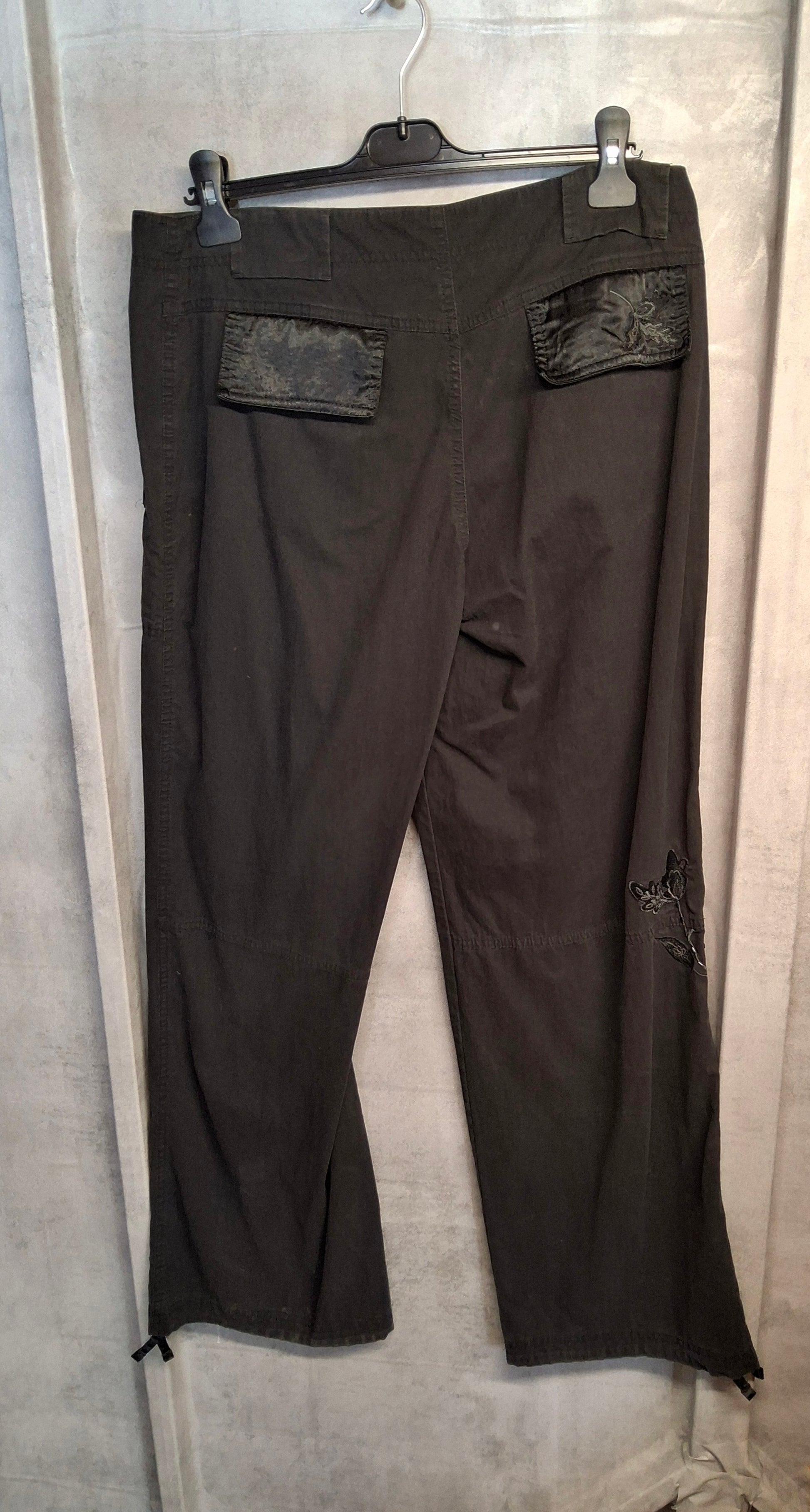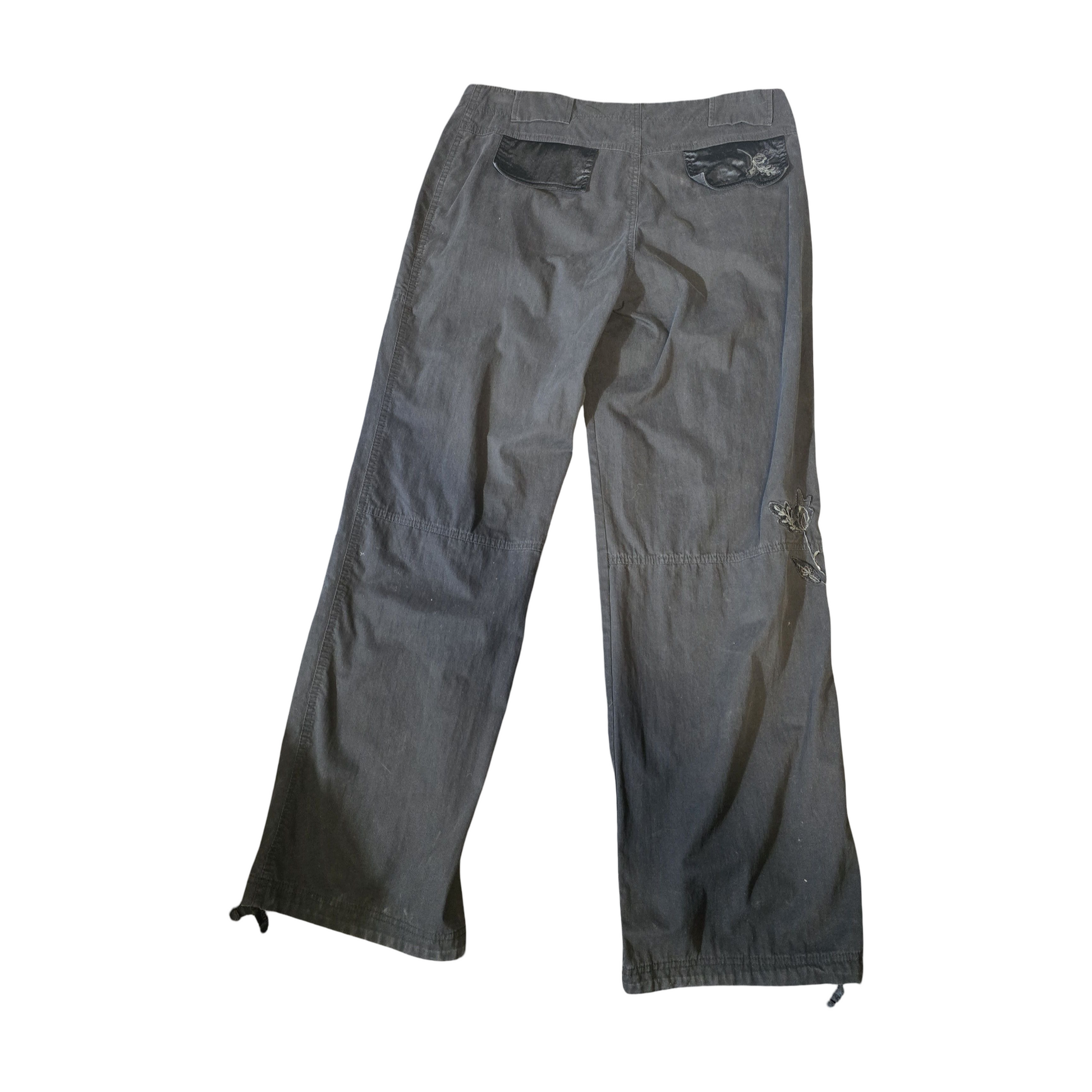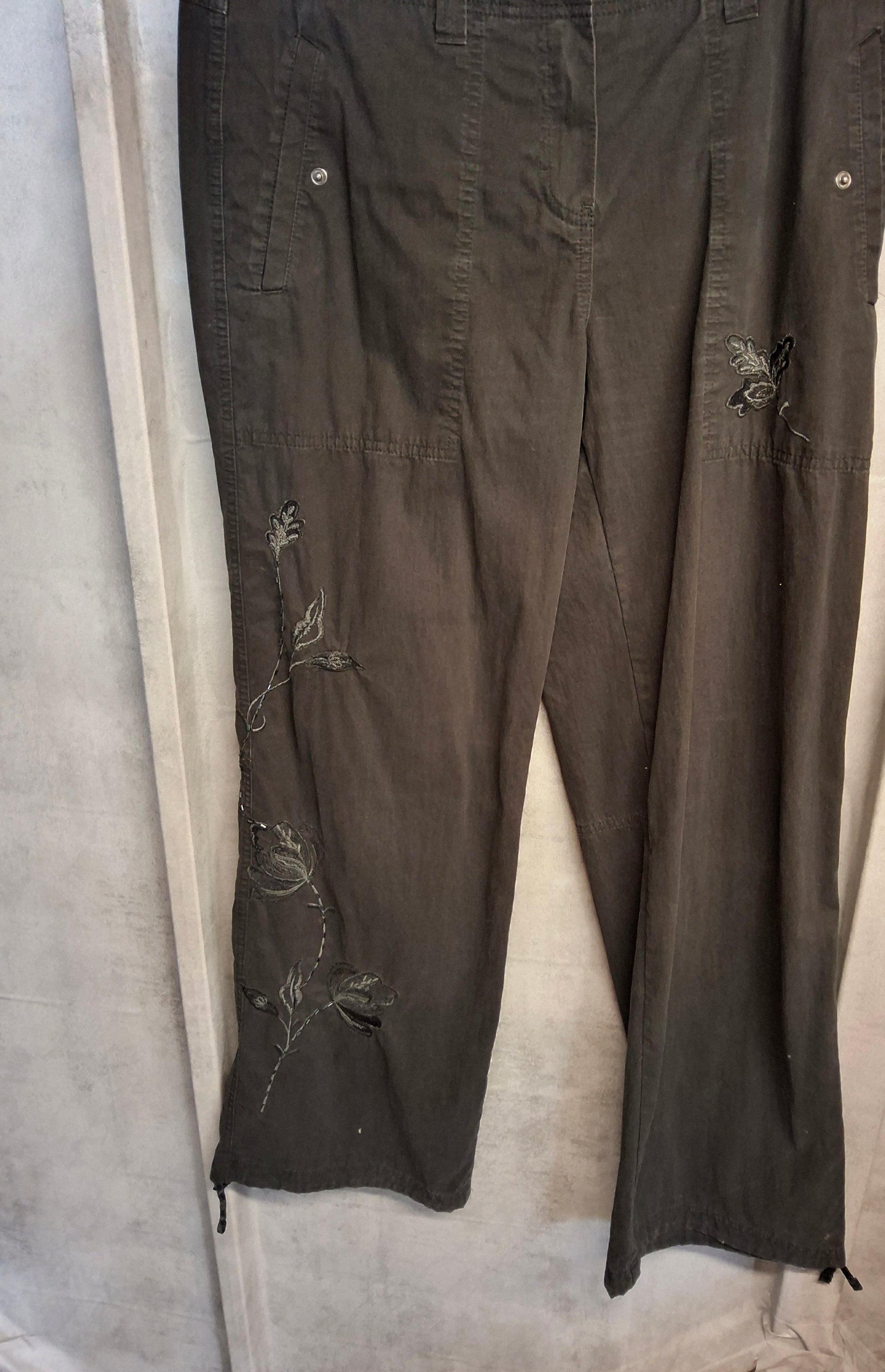 Y2K M&S Black Flare Cargo Trousers β Floral Embroidered, High Waist, Size 14