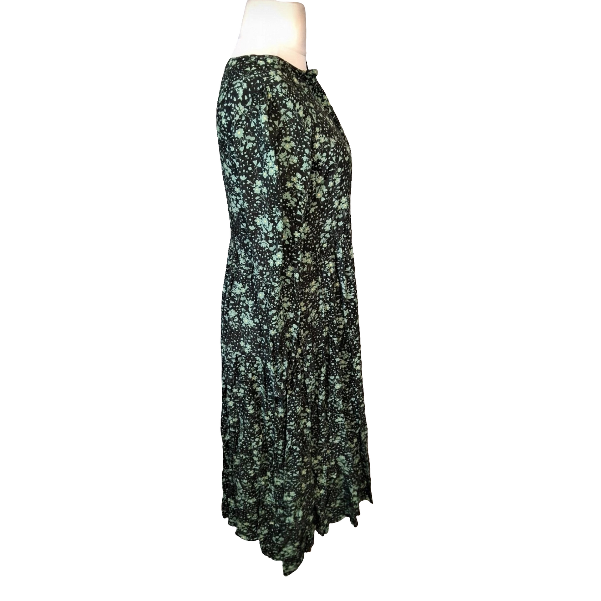 Zara Black & Green Floral Midi Dress β Long Sleeve β Size S (UK size 10/12)