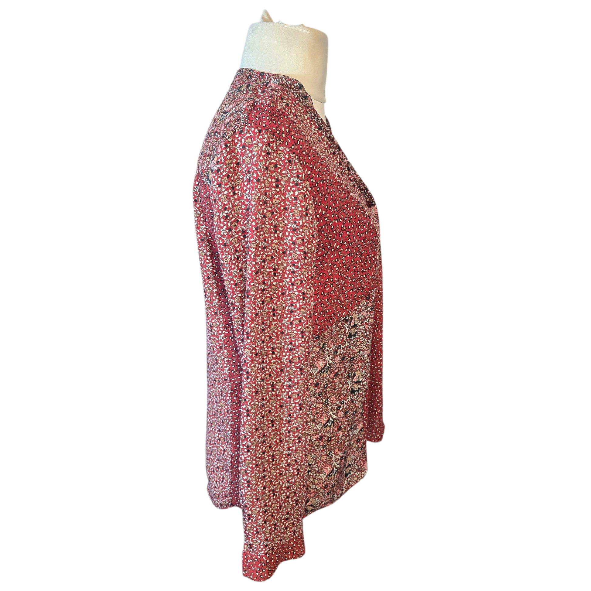Zara Burgundy Red Floral Patchwork Blouse – Size M (UK size 10/12) – 100% Polyester