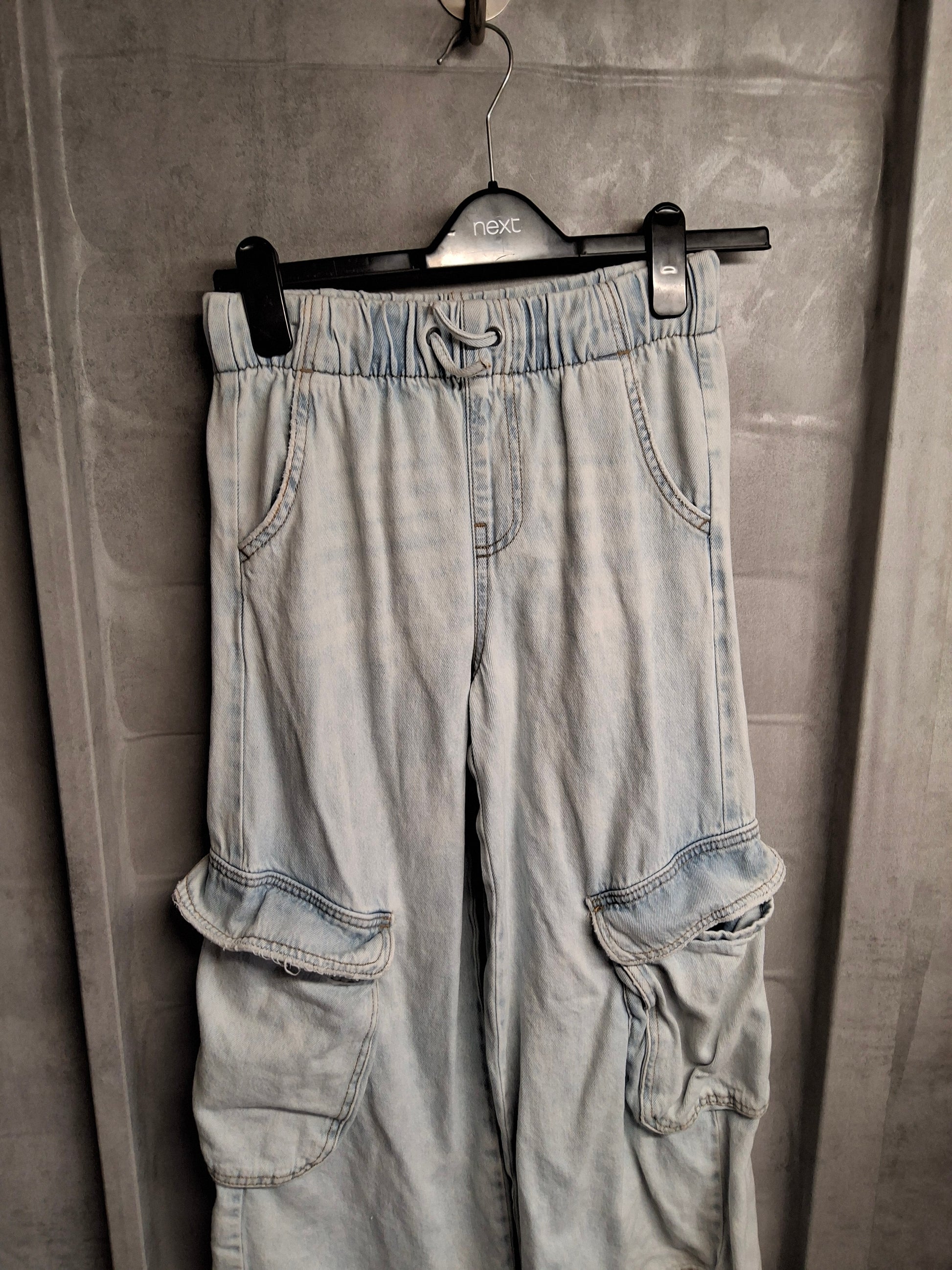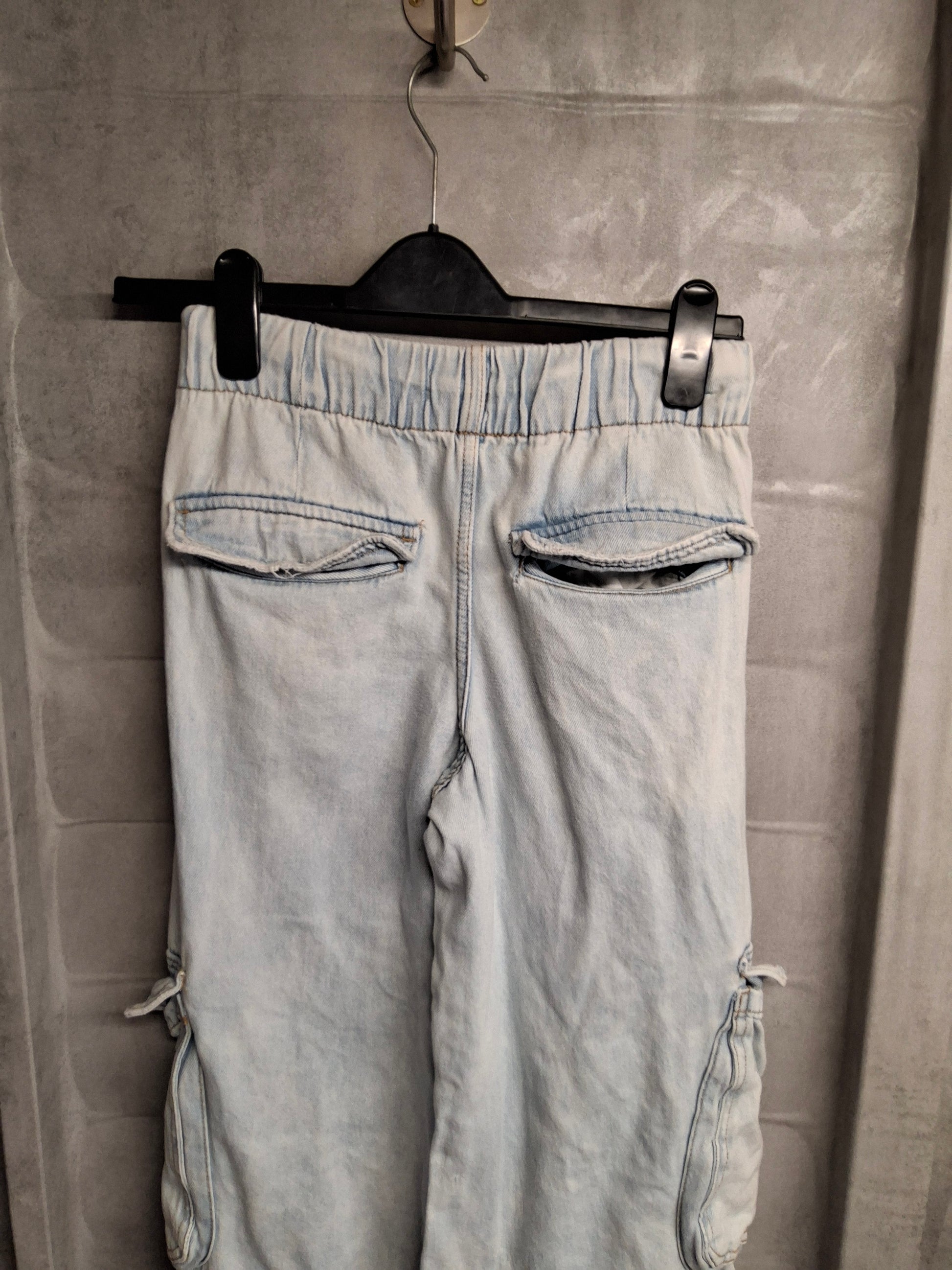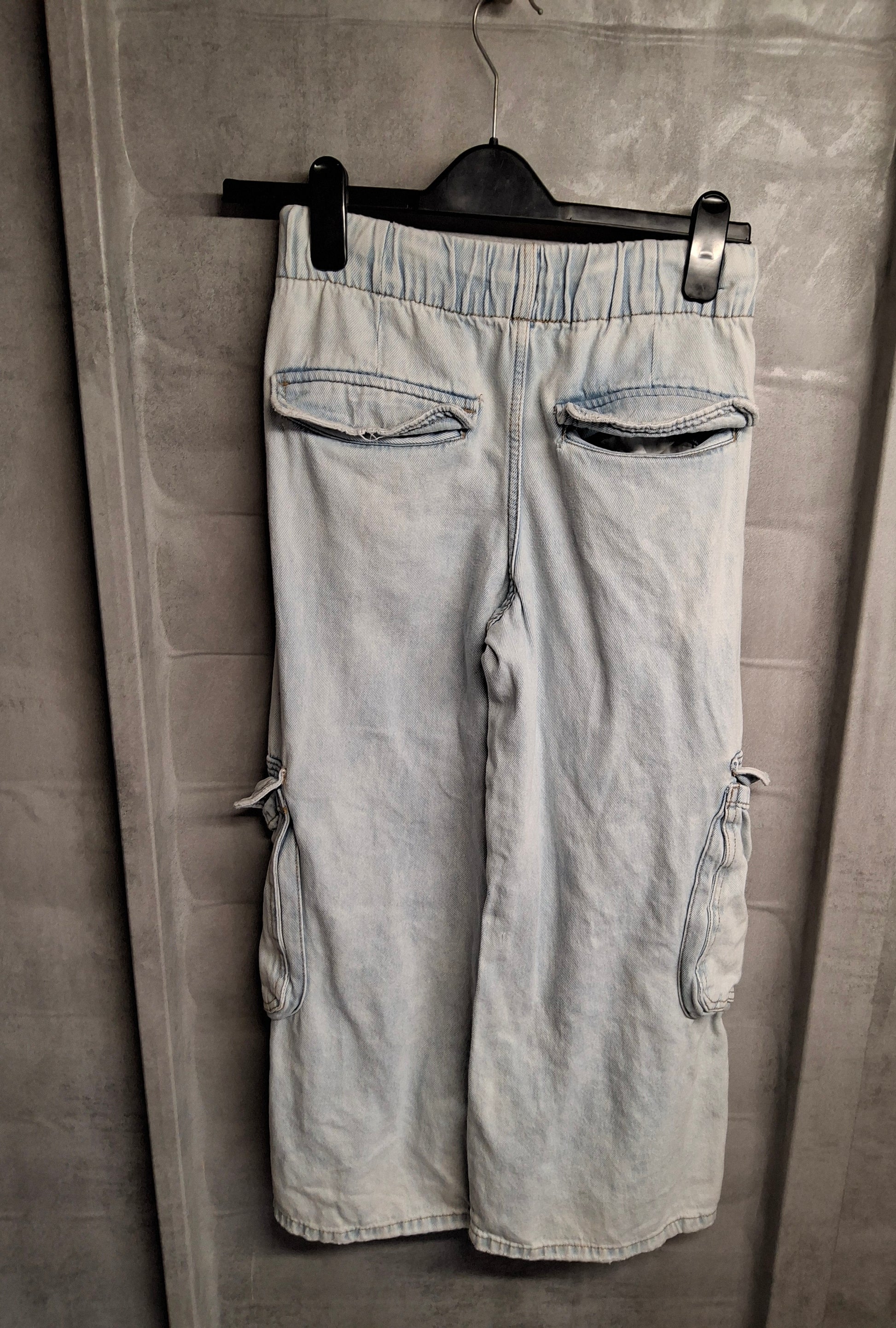 Zara Kids Light Blue Baggy Flared Cargo Jeans ā Size 11-12 Years ā Elasticated Waist Girls