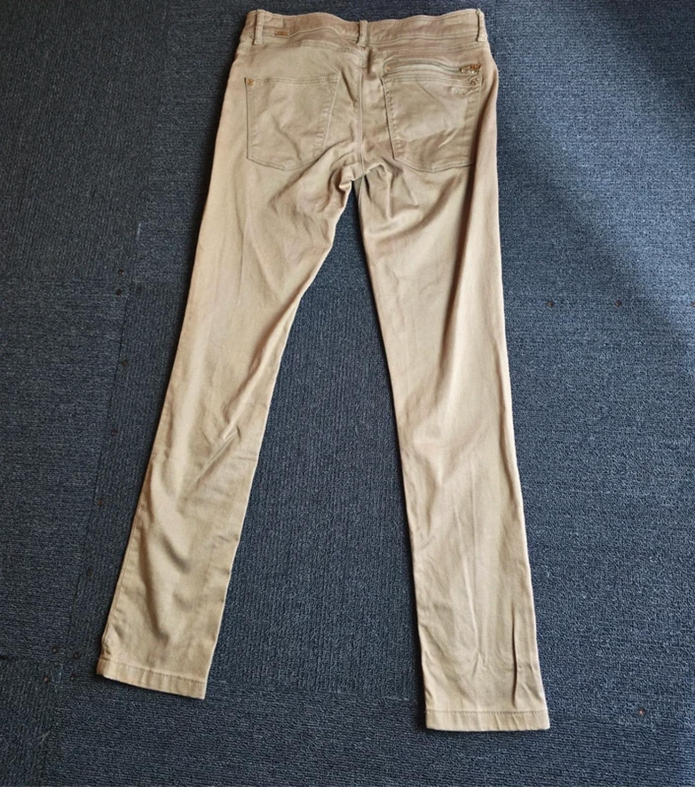 Preloved skinny jeans in beige with a subtle gold glint finish, ideal for everyday, casual or going-out wear.